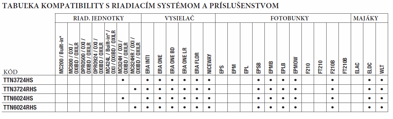 Modely TTN3724RHS a TTN6024RHS jsou kompatibilní s řídící jednotkou MC824HR.