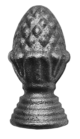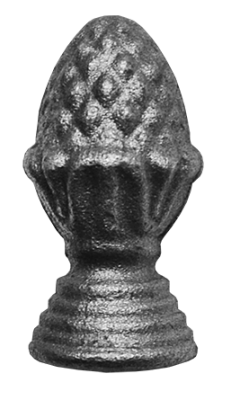 426 - kované ukončení 62 x 30 mm, podstava ø 30 mm, hmotnost 0,18 kg. Produkt je v surovém stavu vhodný pro svařování a zinkování. Vhodné použití jako ozdobný prvek pro kované ploty, brány, schodiště apod.