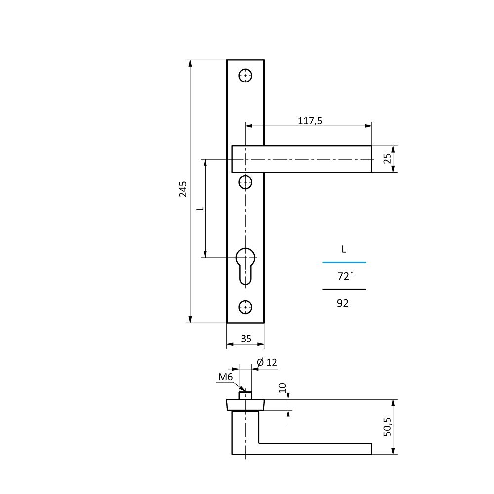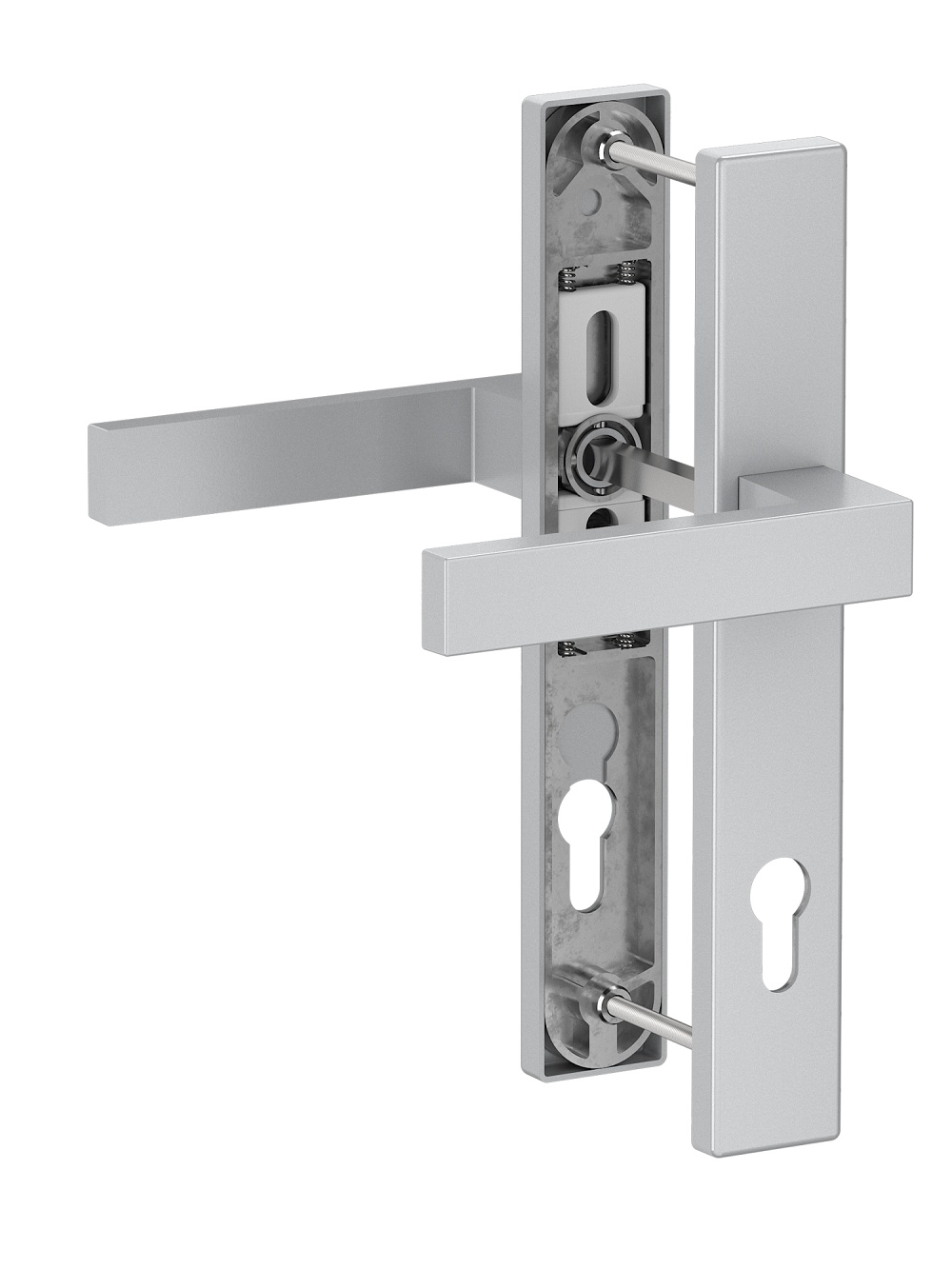 Sada dveřního kování klika + klika + štítek, barva stříbrná. Vyrobeno z odolného hliníkového materiálu, který zaručuje pevnost, dlouhou životnost a odolnost vůči každodennímu používání. Vhodné do exteriéru i interiéru.