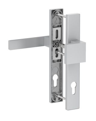 Sada dveřního kování klika + koule + štítek, barva stříbrná. Vyrobeno z odolného hliníkového materiálu, který zaručuje pevnost, dlouhou životnost a odolnost vůči každodennímu používání. Sada kombinuje pohyblivou kliku na vnitřní straně a pevnou kouli na vnější straně. Toto řešení zvyšuje bezpečnost, jelikož z vnější strany je k otevření dveří vždy nutné použít klíč. Štítové provedení elegantně zakrývá zadlabávací zámek a montážní otvory. Set je univerzální, vhodný pro montáž na pravé i levé dveře. Vhodné do exteriéru i interiéru. Rozměry viz výkres.