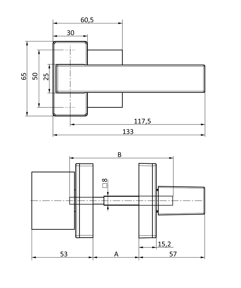 Moderní sada dveřního kování klika + koule, hranatá rozeta, barva černá RAL 9005 matná. Vyrobeno z odolného hliníkového materiálu, který zaručuje pevnost, dlouhou životnost a odolnost vůči každodennímu používání. Sada kombinuje pohyblivou kliku na vnitřní straně a pevnou kouli na vnější straně. Toto řešení zvyšuje bezpečnost, jelikož z vnější strany je k otevření dveří vždy nutné použít klíč. Set je univerzální, vhodný pro montáž na pravé i levé dveře. Vhodné do exteriéru i interiéru. Rozměry viz výkres.