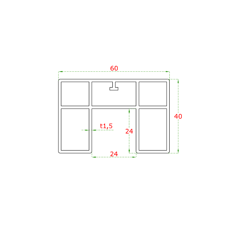 Hliníkové madlo 60 x 40 x 1,5 mm / 24 x 24 mm určené pro sklo 8 - 17,5 mm, broušený povrch, bez gumových těsnění, uvedená cena je za délku 5 m.