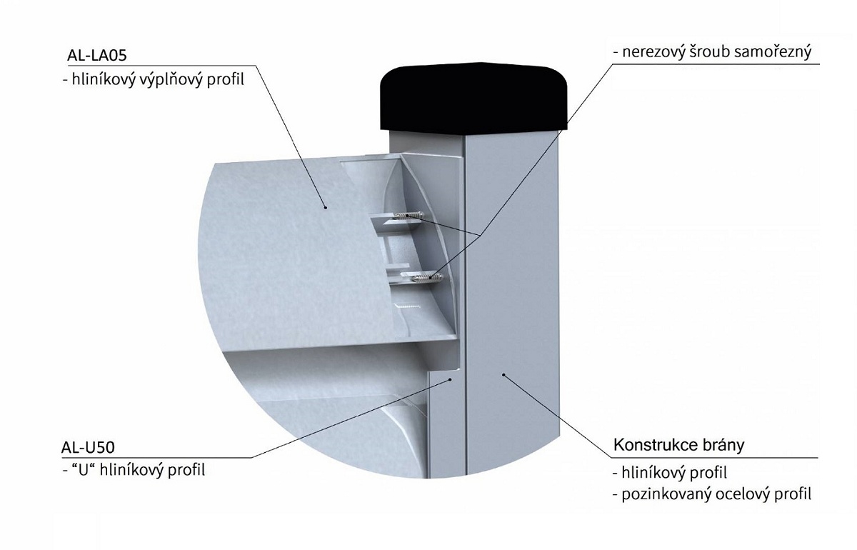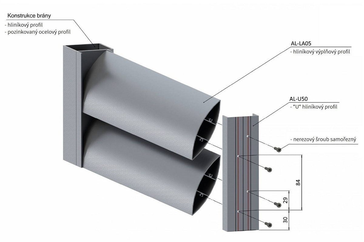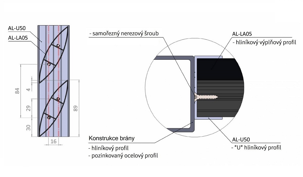 Profil lze montovat jako výplň v kombinaci s U profily např. AL-U21-7016S-6, AL-U21-7016S-6. Pokud se rozhodnete spojovat více polí s lamelovou výplní, doporučujeme využít spojovací UT profily. V naší nabídce najdete UT profily se šířkou 29 mm a 50 mm.