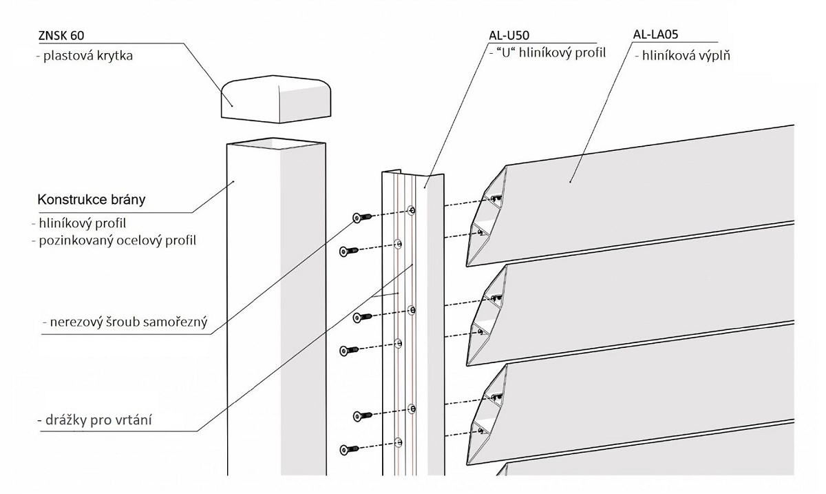 Montáž lamelových výplní usnadňují U a UT profily s výrazně naznačenými vodícími drážkami pro vrtání, díky kterým se lamely snadno uchytí v požadovaném úhlu a v přesně naměřené vzdálenosti v poli výplně. Pro dokonalé spoje a odolnost vůči korozi doporučujeme použít nerezové vruty z naší nabídky.