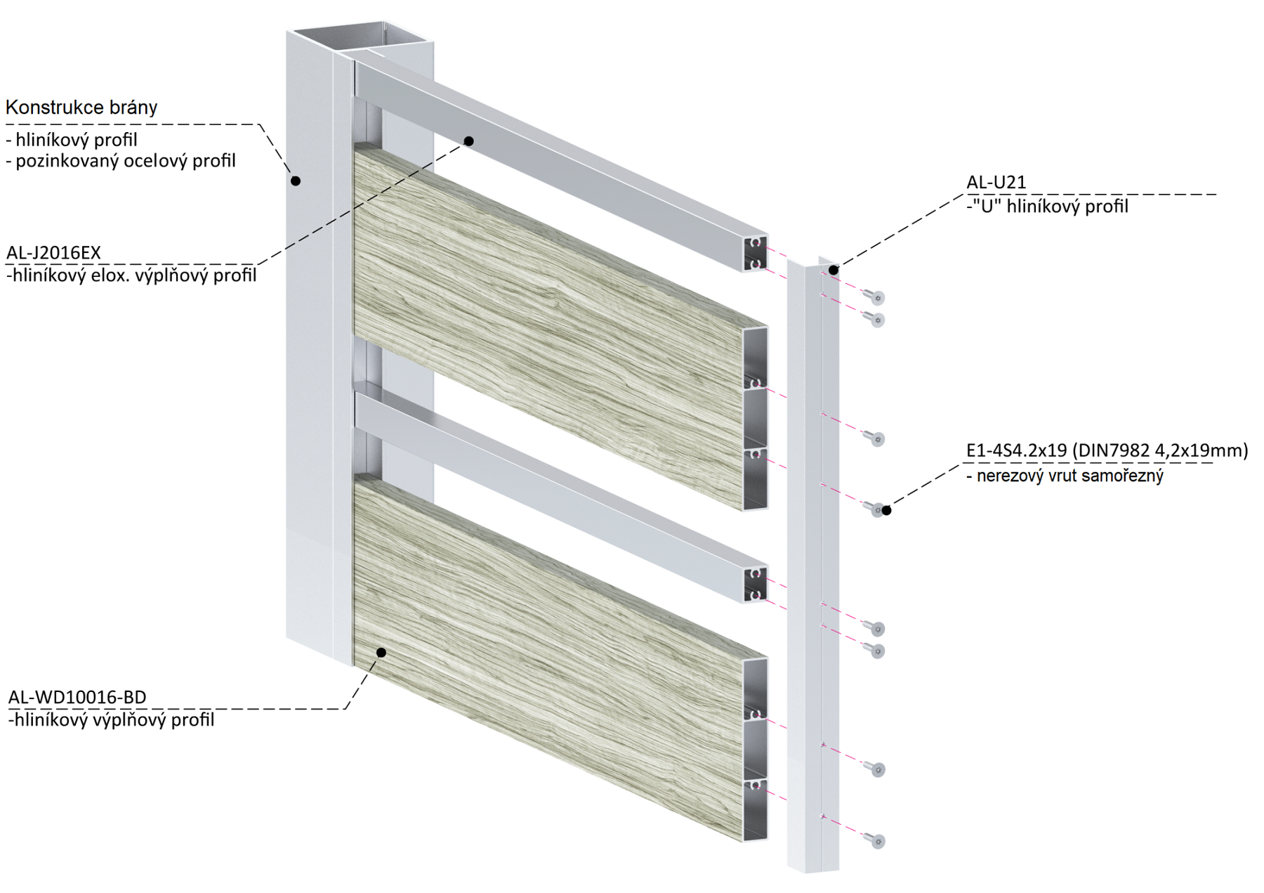 Montáž lamelových výplní usnadňují U a UT profily s výrazně naznačenými vodícími drážkami pro vrtání, díky kterým se lamely snadno uchytí v požadovaném úhlu a v přesně naměřené vzdálenosti v poli výplně. Pro dokonalý spoj a odolnost vůči korozi doporučujeme použít nerezové vruty z naší nabídky.