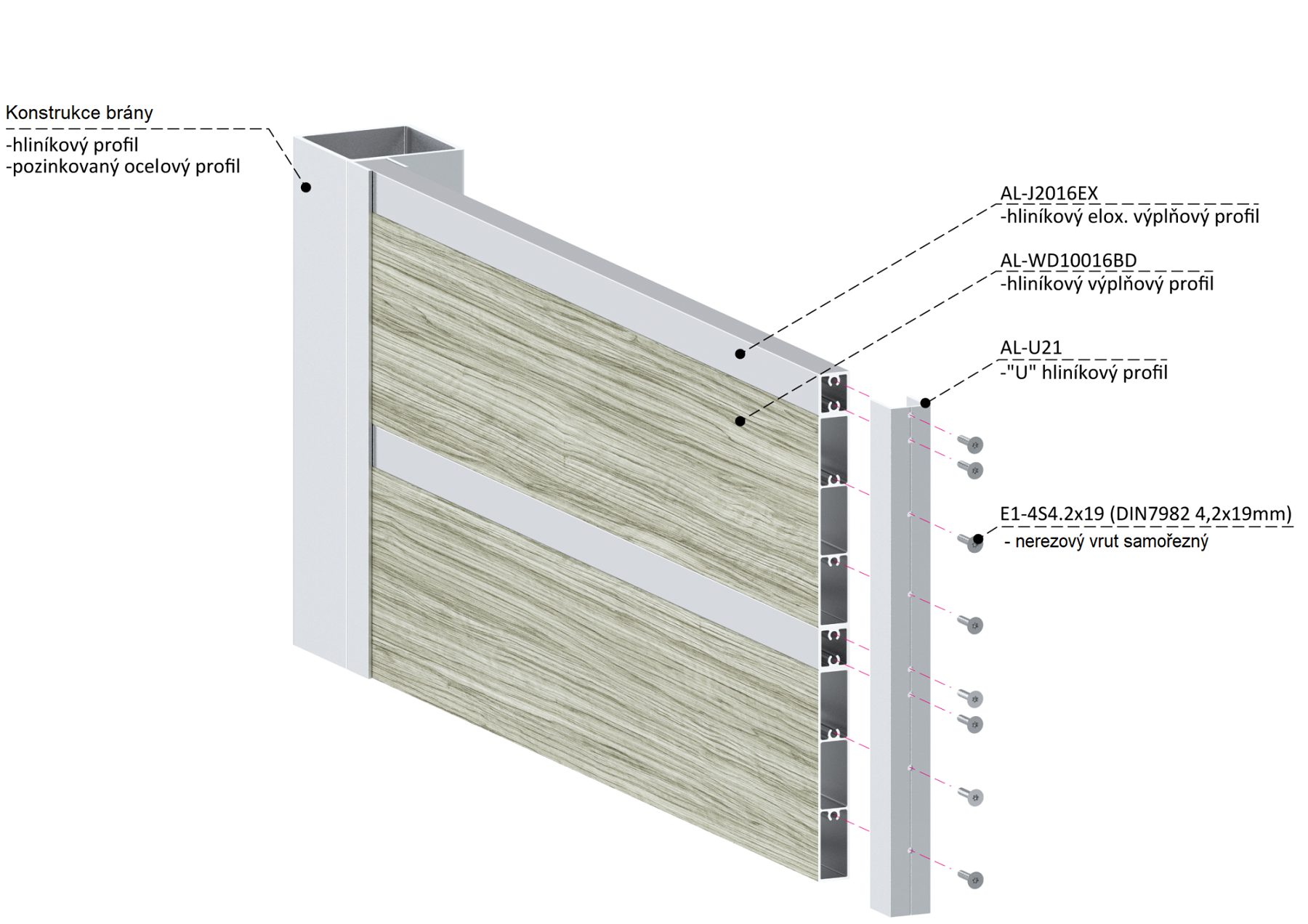 hliníkový profil na plotovou výplň, DŘEVODEKOR bílý dub