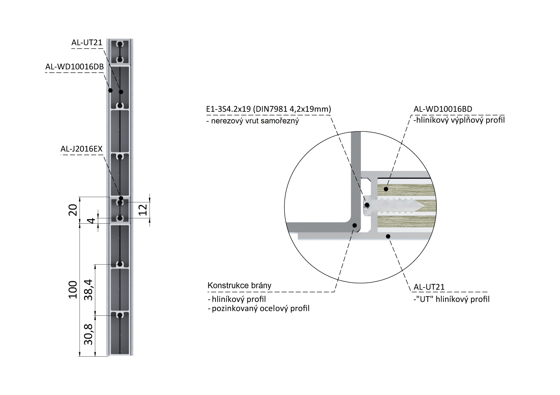 Lamelu AL-WD10016BD-6 je možné montovat jako výplň v kombinaci s U a UT profily.