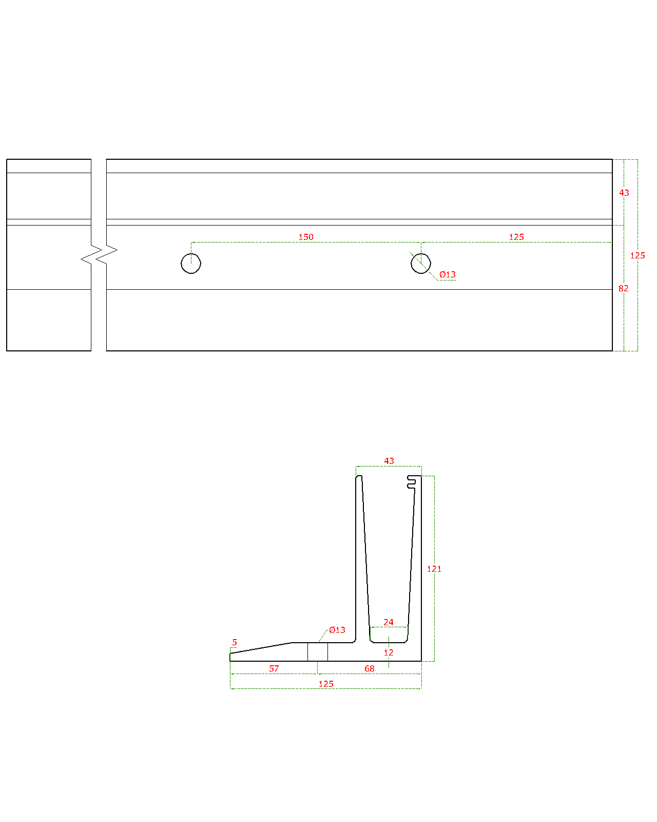 hliníkový profil - spodní lišta skla, vrchní kotvení