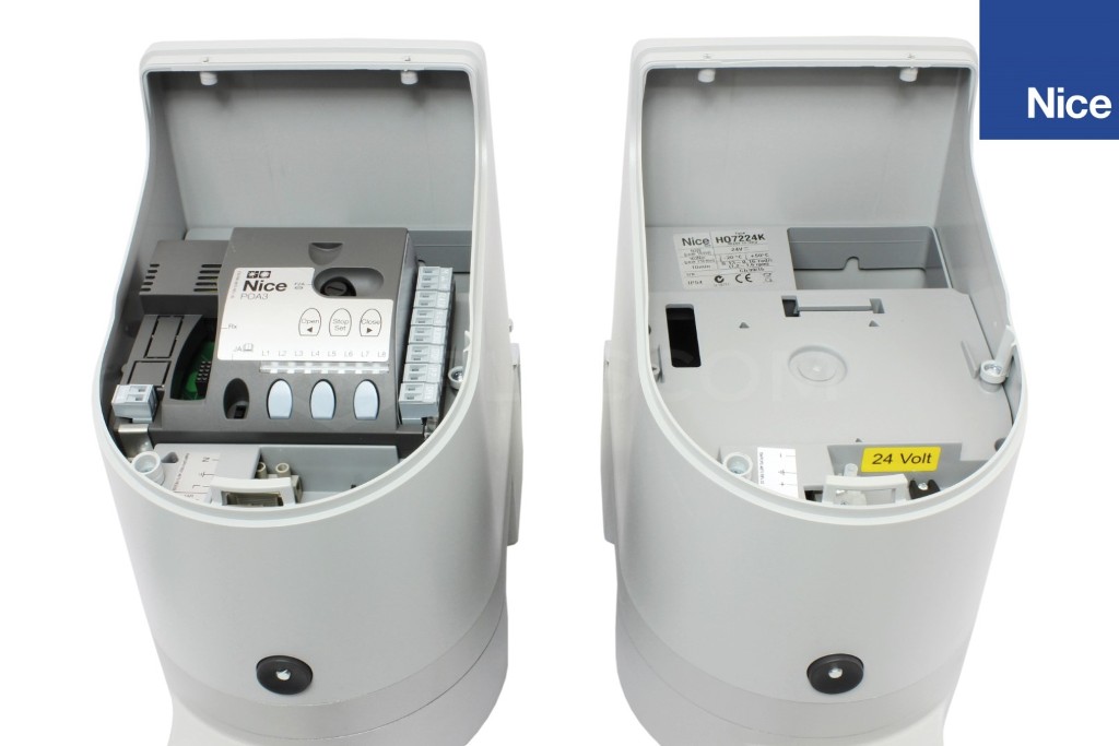 Vestavěná řídící jednotka, možnost odblokování pohonu zvenku, velmi tichý chod, pomalý rozjezd a dojezd. Dvě samosvorné verze 24 Vdc s mechanickými dorazy s milimetrovým nastavením při otevírání a zavírání: se zabudovanou řídicí jednotkou (H07124) a bez řídicí jednotky (H07224). Výkonný díky kroutícímu momentu 250 Nm. Jednoduchá montáž díky novému držáku s rychlým uchycením. Bez sváření.