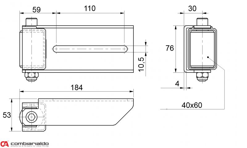 C459P - horní vedení brány s nylonovou kladkou 40 x 60 mm a krytem od předního italského výrobce Combi Arialdo. Povrchová úprava - pozink. Použití pro posuvné brány.