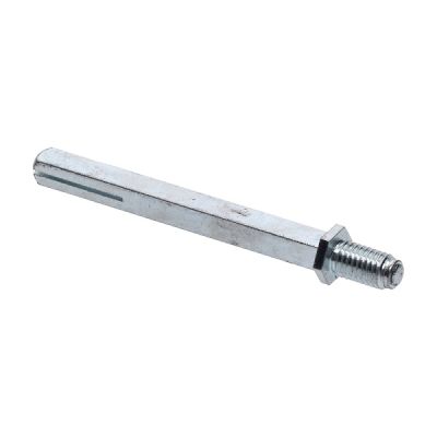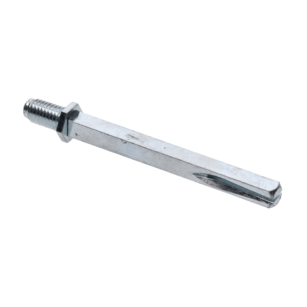 KL-8/M12 - pozinkovaná hřídel kliky 8 x 8 x 115 mm s otočnou maticí M8, závit M10 pro kombinaci kliky s pevnou koulí. Závit hřídele se upevní do pevné koule.