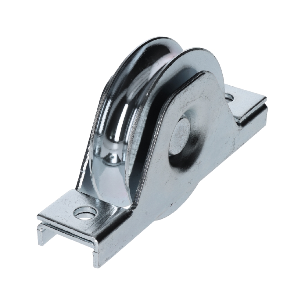 W425/80/16U - kladka ø 80 mm pro zapuštění do jeklu jednoložisková, drážka tvaru "U", max. zatížitelnost 300 kg, povrchová úprava pozink. Použití pro posuvnou bránu.