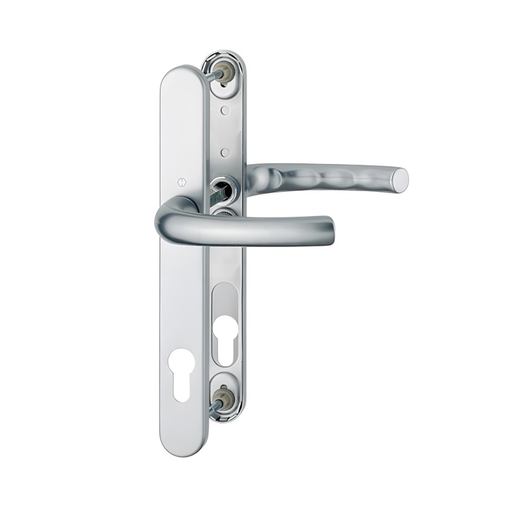 Kování klika / klika s úzkými štítky HOPPE Tokyo, elox F1 stříbrný. Kompletní hliníkové kování vhodné např. pro průchozí dveře do vrat.