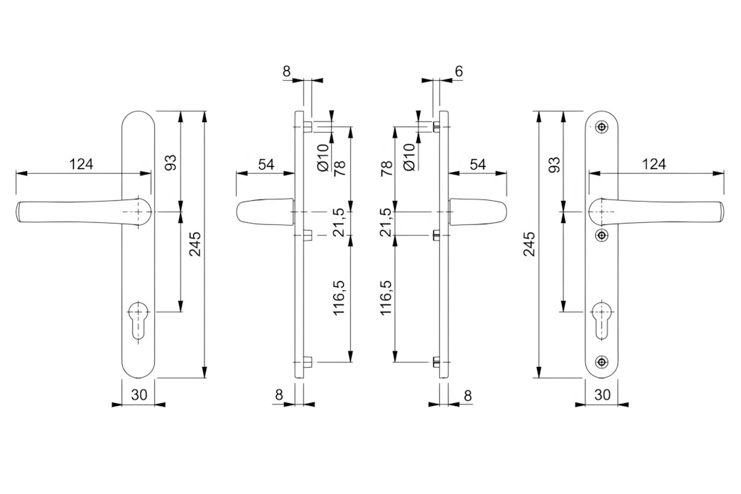 - pro tloušťku dveří 57 - 62 mm (v případě jiné tloušťky dveří nutno koupit správný spojovací materiál)