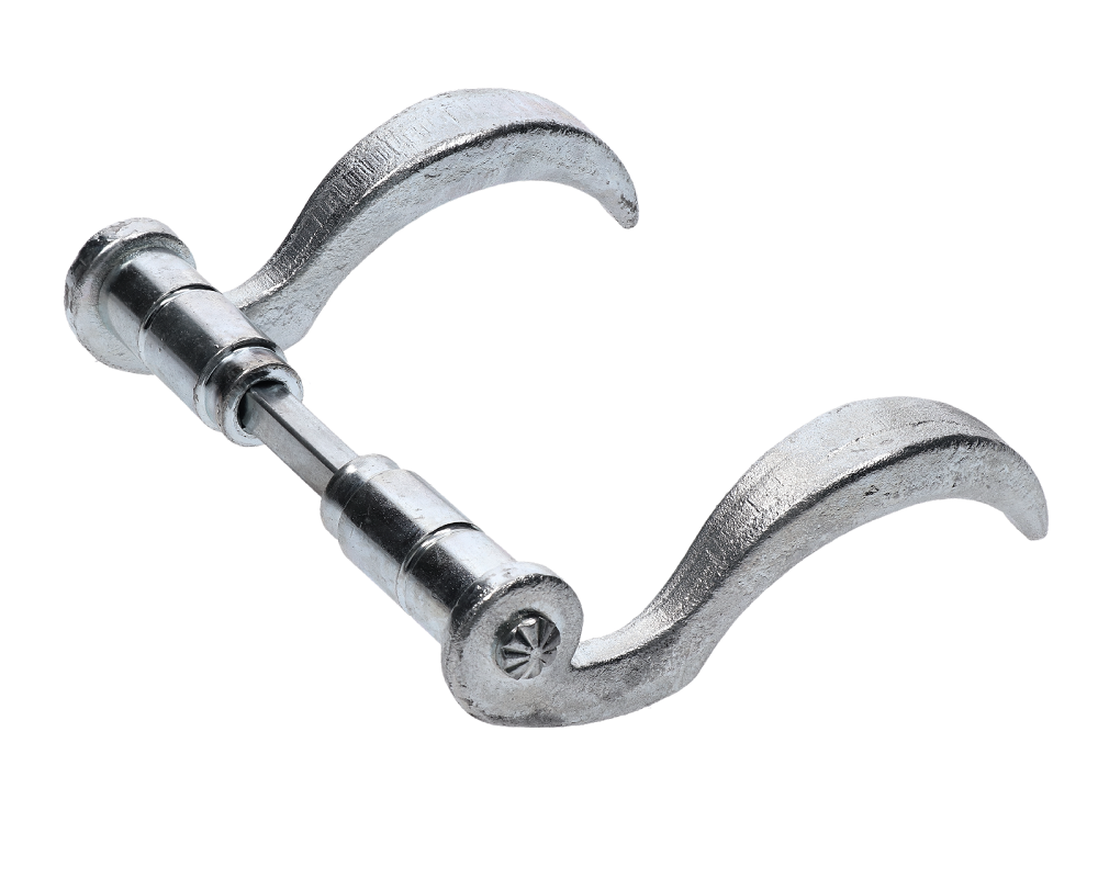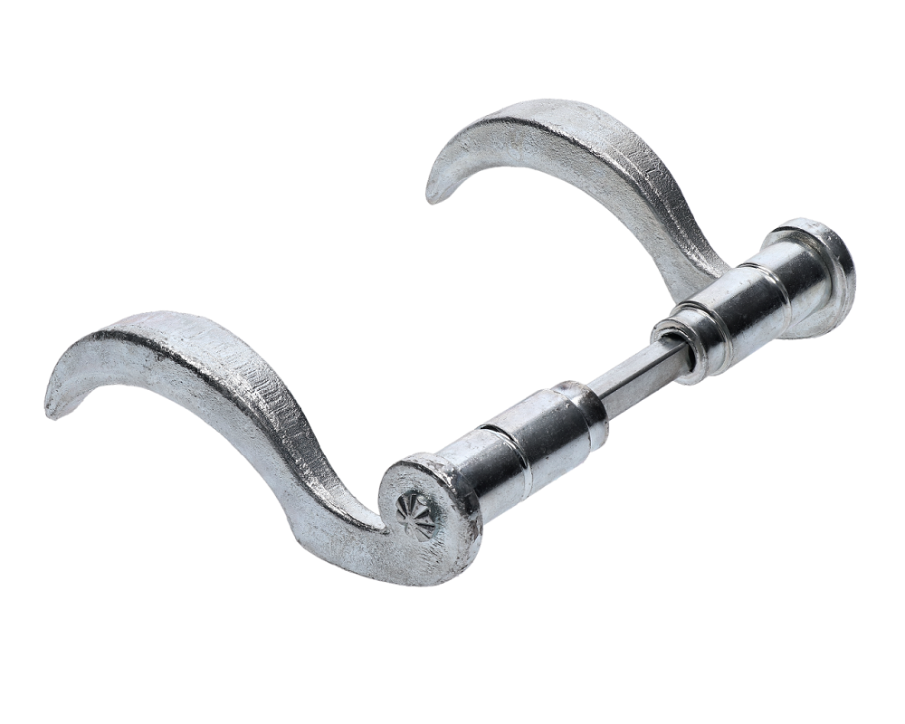 KLU29Zn - ozdobná kovaná klika 132 x 42 mm, průměr osazení na štítek 18 mm, bílý zinek, balení 1 pár + hřídel kliky.