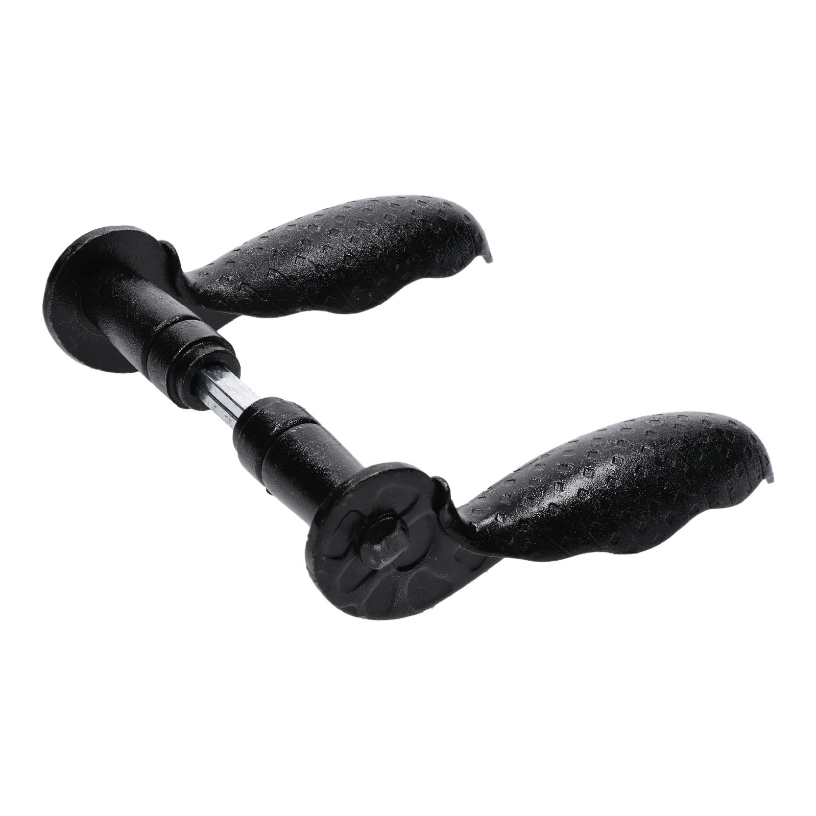 KLU24 - ozdobná kovaná klika, délka 140 mm, šířka 65 mm, průměr osazení na štítek 18 mm, povrchová úprava černá galvanizace, balení 1 pár + hřídel kliky.