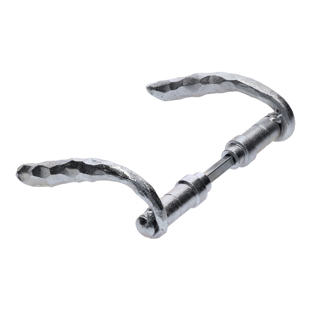 KLU28P - ozdobná kovaná klika 140 x 80 mm, průměr osazení na štítek 18 mm, bílý zinek, balení 1 pár + hřídel kliky.