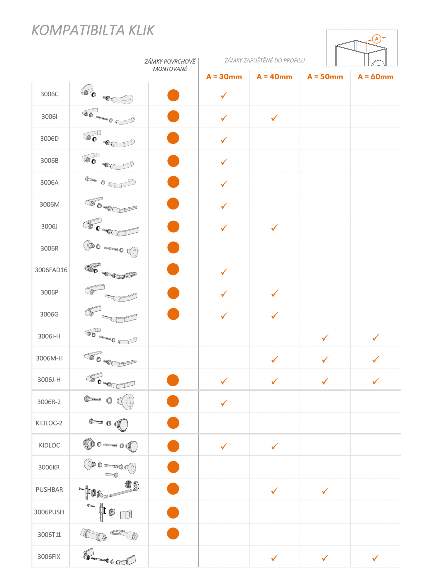 LOCINOX® 3006C - hliníková klika s plastovými kroužky, čtyřhranem a jistícím šroubem vhodná do profilu 30 mm. Materiál eloxovaný hliník, barva stříbrná, hřídel 8 x 8 x 60 mm. Balení 1 pár. Tuto kliku lze použít do všech zámkových krabic LOCINOX®.
