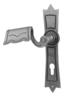 KL193/85 - klika se štítkem kovaná, levá, rozměr 260 x 57 x 3 mm, rozteč 85 mm. Balení 1 ks + hřídel kliky.