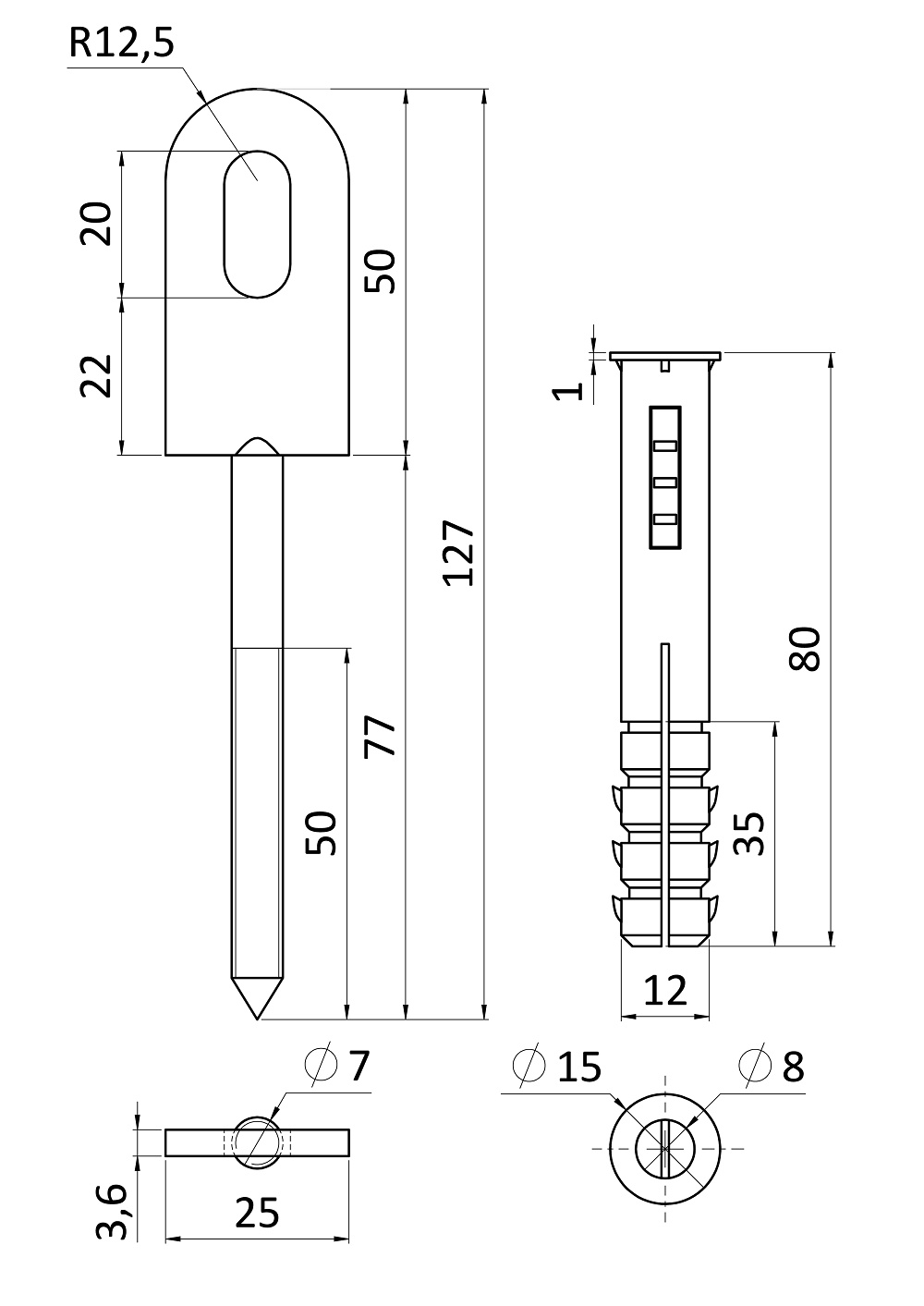 kotvení plotu 50 x 25 mm s hmoždinkou