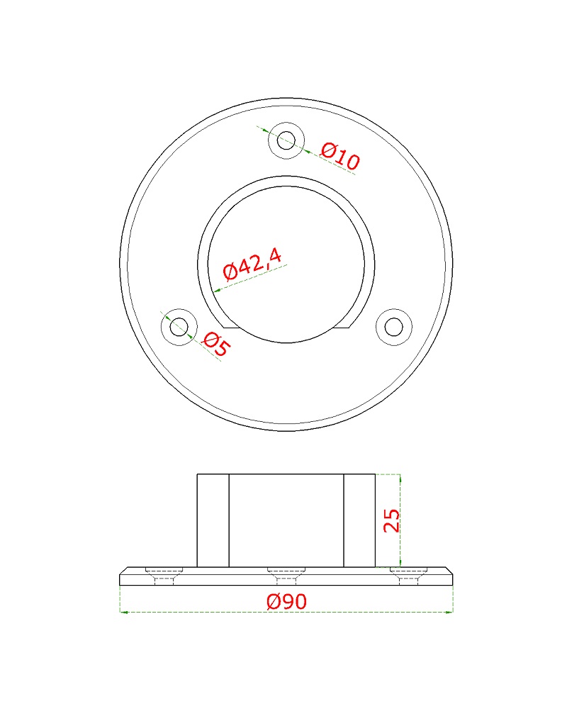 Kotvící příruba ø 42,4 x 1,5 mm na madlo EB1-HM42, lepený spoj, broušená nerez K320 / AISI304.