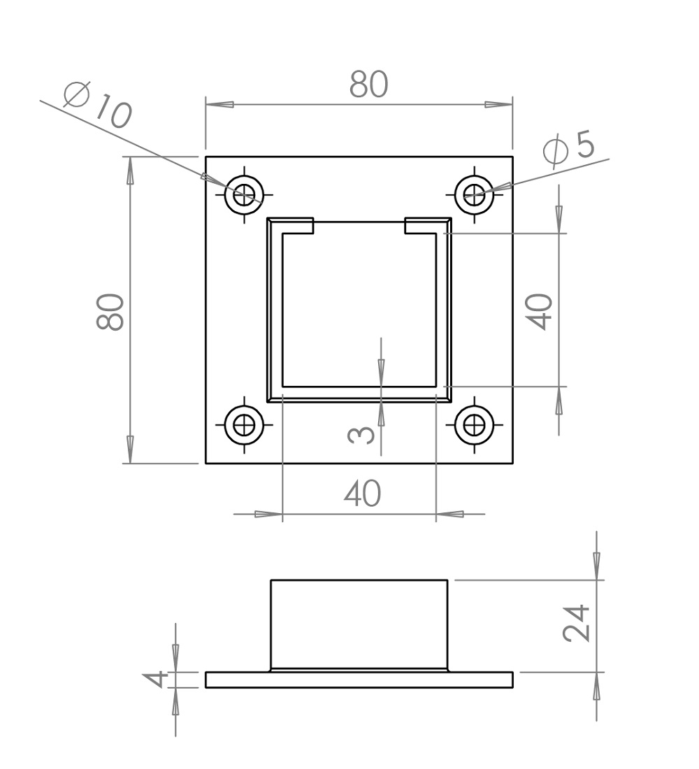 Kotvící příruba 80 x 80 mm určená na čtvercové madlo JHM40, lepený spoj, materiál broušená nerez K32...Ukaž celý popis >