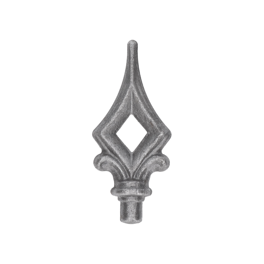 2312/S - kované ukončení - špice 98 x 44 mm, podstava ø 12 mm, výkovek. Produkt je v surovém stavu vhodný pro svařování a zinkování. Použití na brány, ploty, oplocení a zábradlí.