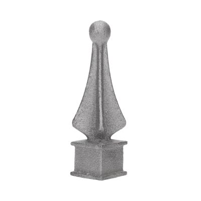 403/D - kované ukončení 110 x 35 mm, podstava 25 x 25 mm s otvorem 17 x 17 mm, výkovek. Produkt je v surovém stavu vhodný pro svařování a zinkování. Použití na brány, ploty, oplocení, zábradlí apod.