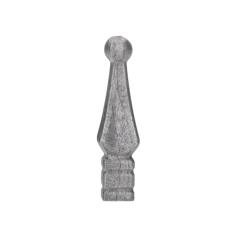 403/S - kované ukončení 80 x 20 mm, podstava čtyřhran 15 x 15 mm, výkovek. Produkt je v surovém stavu vhodný pro svařování a zinkování. Použití na brány, ploty, oplocení, zábradlí apod.