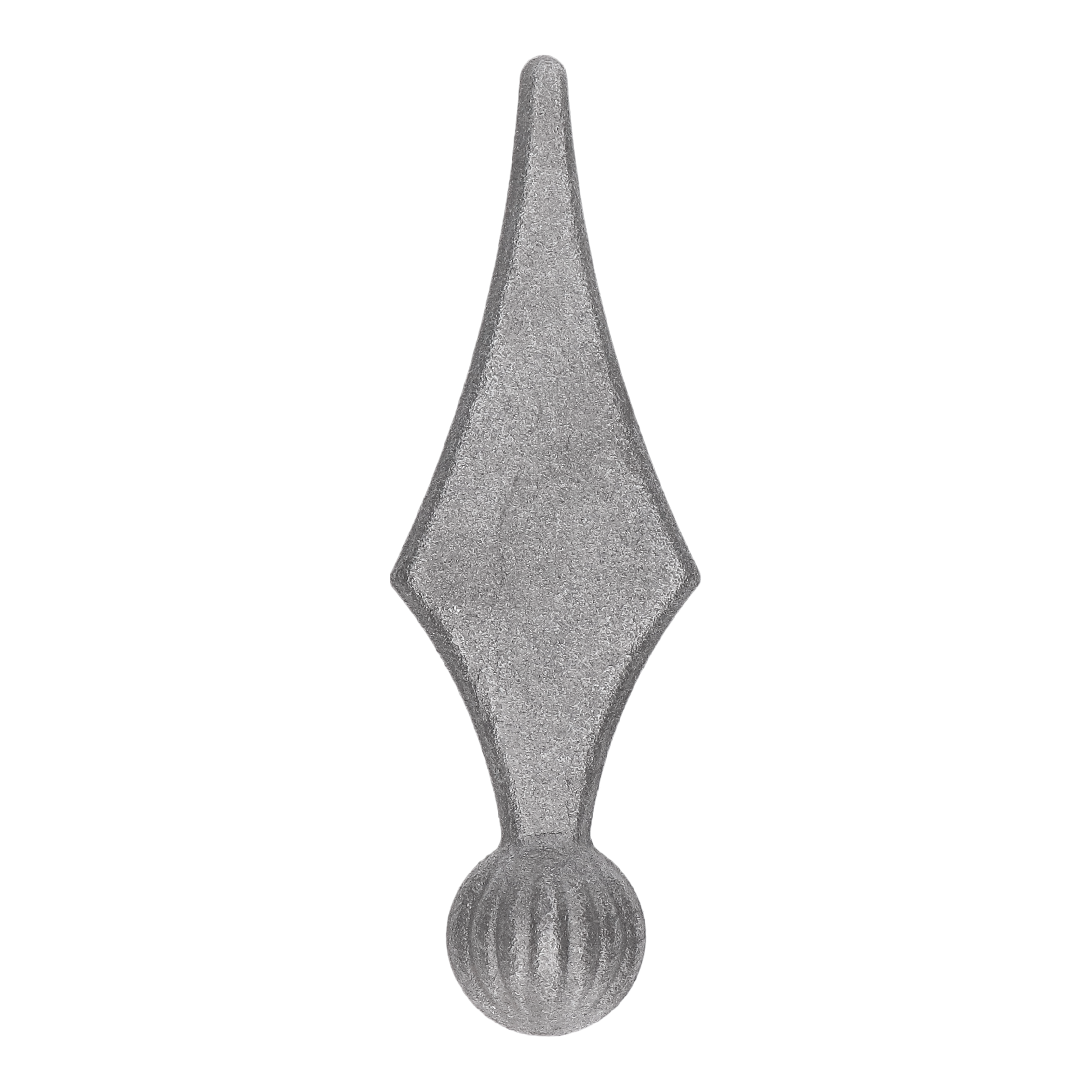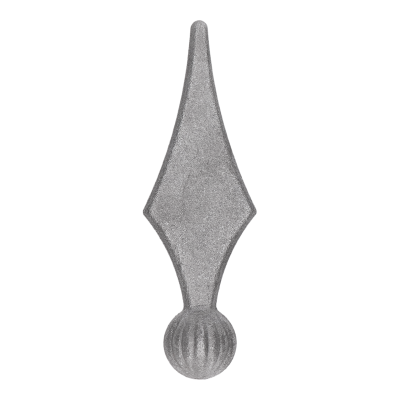 408 - kované ukončení - špice 122 x 38 mm, podstava ø 25 mm, výkovek. Produkt je v surovém stavu vhodný pro svařování a zinkování. Použití na brány, ploty, oplocení a zábradlí.