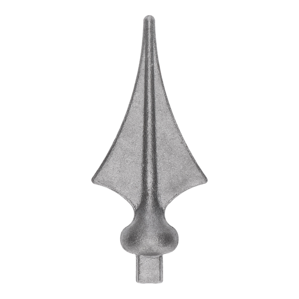 452 - kované ukončení - špice 135 x 72 mm, podstava čtyřhran 14 x 14 mm, výkovek. Produkt je v surovém stavu vhodný pro svařování a zinkování. Použití na brány, ploty, oplocení, zábradlí apod.