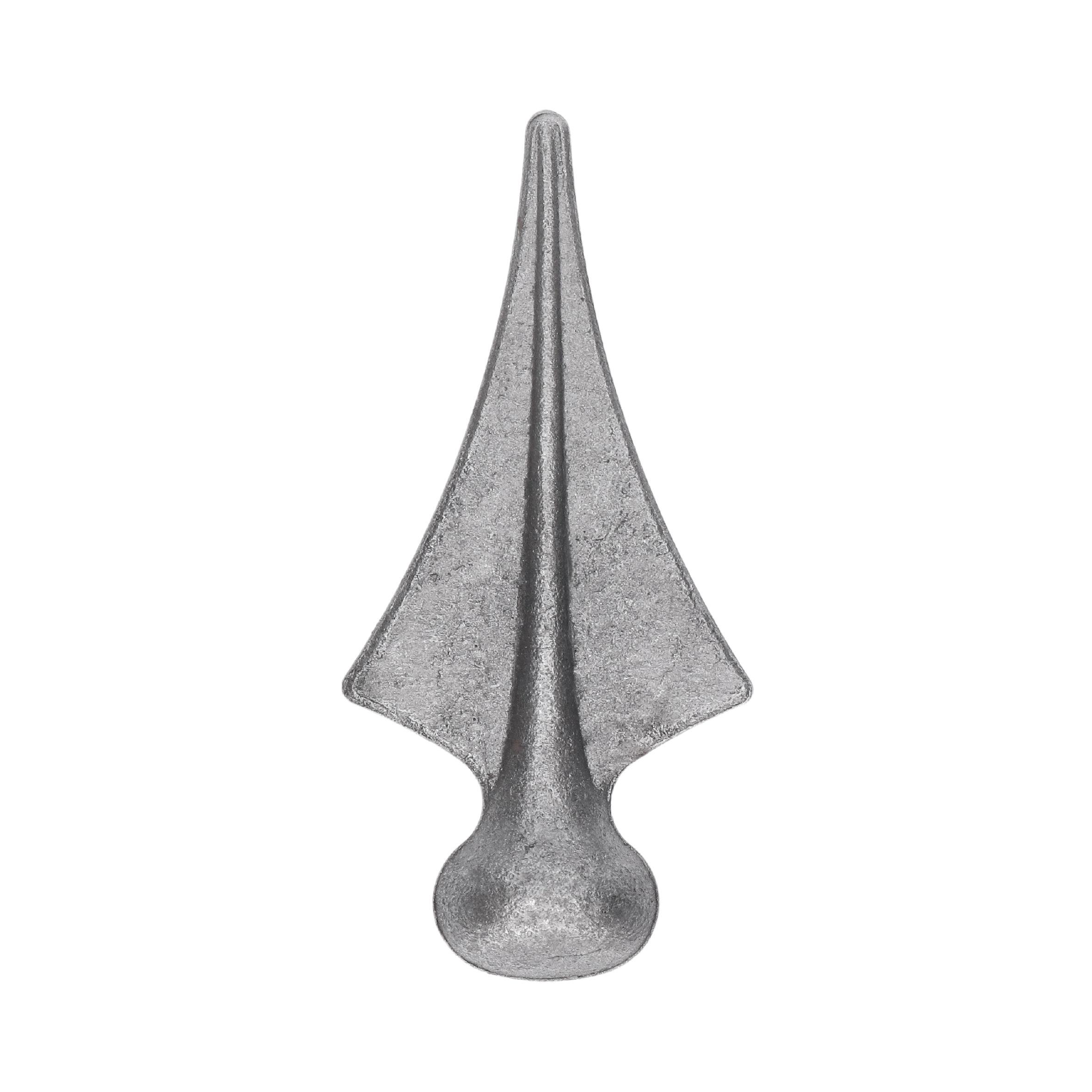 452/SG - kované ukončení 126 x 60 mm, podstava ø 32 mm, výkovek. Produkt je v surovém stavu vhodný pro svařování a zinkování. Použití na brány, ploty, oplocení a zábradlí.