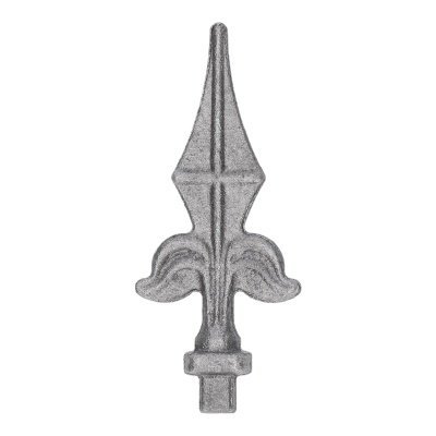 454.12 - kované ukončení - špice 125 x 55 mm, podstava 12 x 12 mm, výkovek. Produkt je v surovém stavu vhodný pro svařování a zinkování. Použití na brány, ploty, oplocení, zábradlí apod.