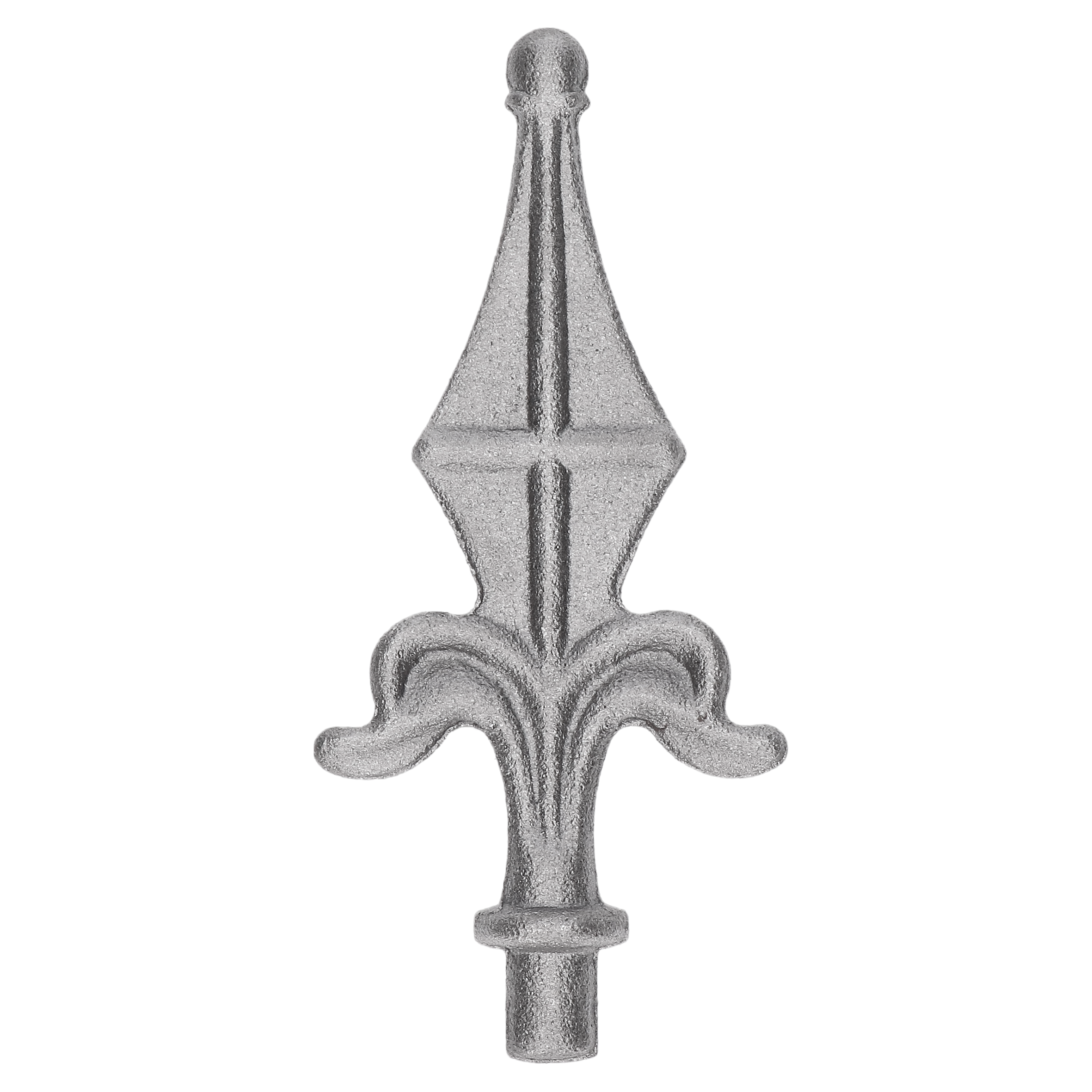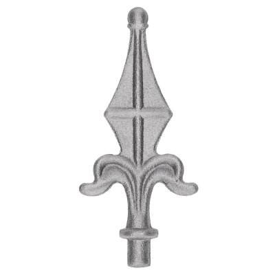 454/B - kované ukončení - špice 130 x 57 mm, podstava ø 12 mm, výkovek. Produkt je v surovém stavu vhodný pro svařování a zinkování. Použití na brány, ploty, oplocení a zábradlí.