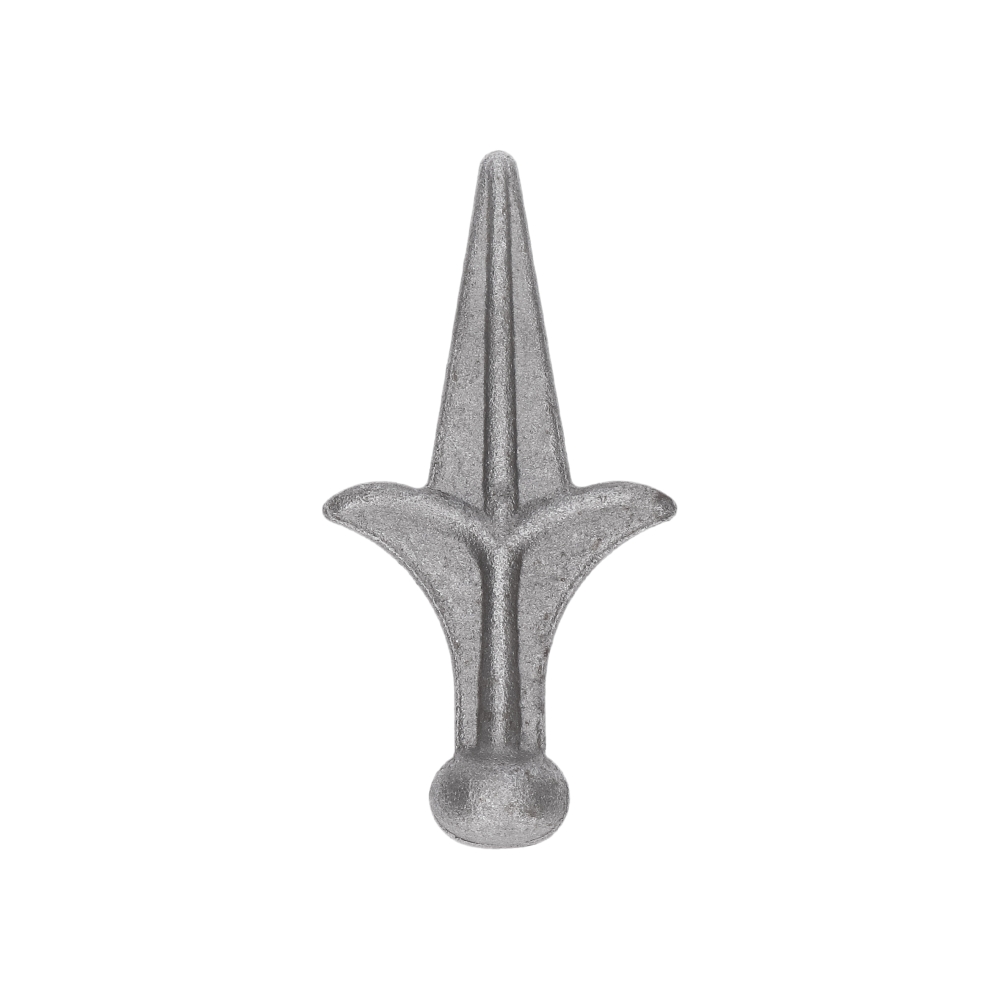 484/S - kované ukončení - špice 97 x 48 mm, podstava ø 20 mm, výkovek. Produkt je v surovém stavu vhodný pro svařování a zinkování. Použití na brány, ploty, oplocení a zábradlí.