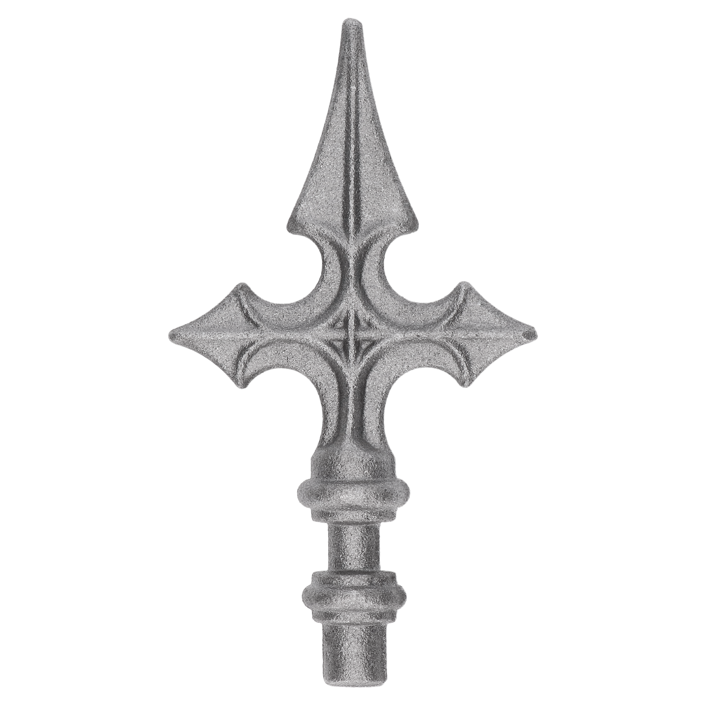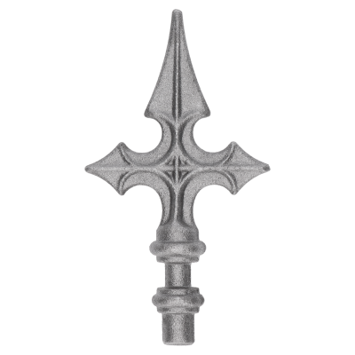 497 - kované ukončení - špice 160 x 84 mm, podstava ø 15 mm, výkovek. Produkt je v surovém stavu vhodný pro svařování a zinkování. Použití na brány, ploty, oplocení a zábradlí.