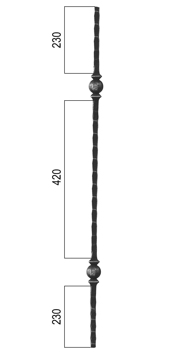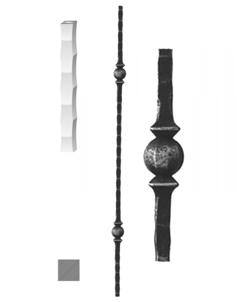 185/Z - kovaná výplň zábradlí, tyč, délka 1000 mm, materiál 12 x 12 mm, válcovaná ocel, hmotnost 1,55 kg.