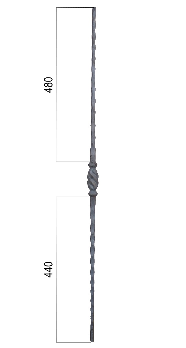 186/Z - kovaná výplň zábradlí, tyč - délka 1000 mm, materiál 14 x 14 mm, válcovaná ocel.