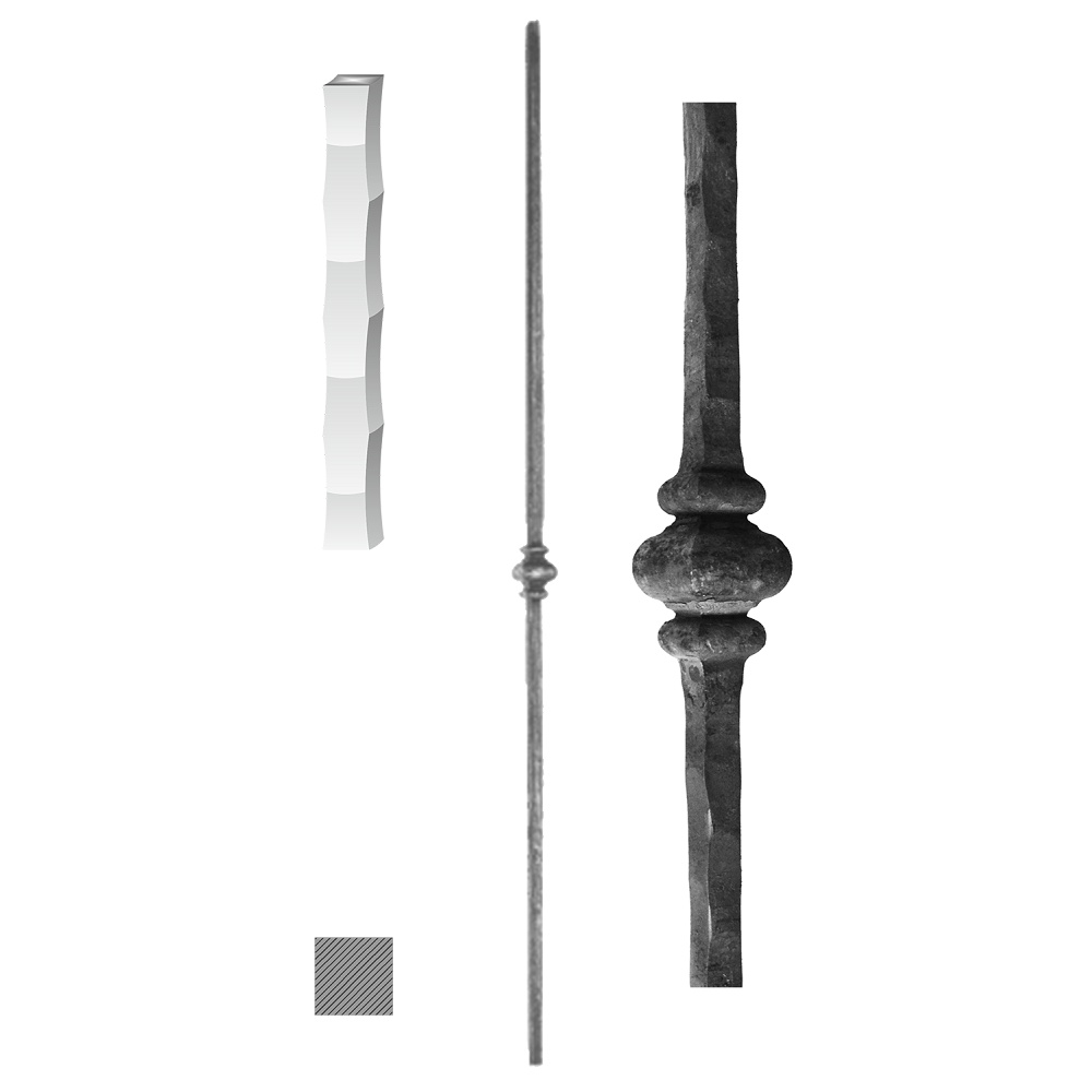 208/Z - kovaná výplň zábradlí, tyč, délka 1000 mm, materiál 12 x 12 mm, válcovaná ocel, hmotnost 1,1 kg.