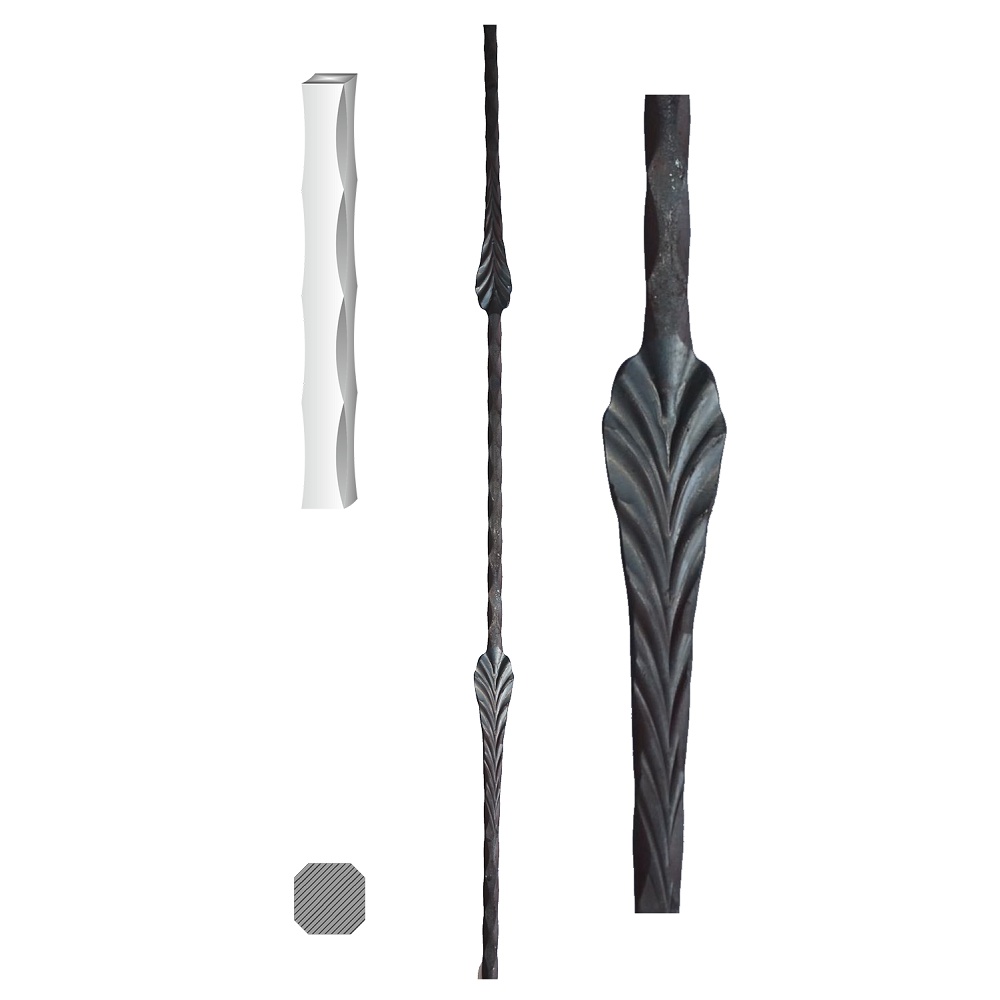 4222/F09 - kovaná výplň zábradlí, tyč - délka 900 mm, materiál 12 x 12 mm, válcovaná ocel, hmotnost 1,0 kg.