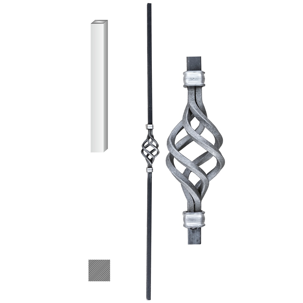KI10/10H - kovaná výplň zábradlí, tyč 1000 x 60 mm, materiál 12 x 12 mm, hladká ocel bez povrchové úpravy.