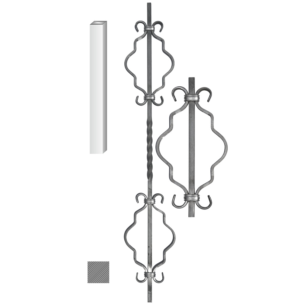 KI22/09H - kovaná výplň zábradlí, tyč 900 x 150 mm, materiál 12 x 12 mm, hladká ocel bez povrchové úpravy.