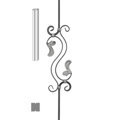 T145 - kovaná výplň zábradlí, tyč 950 mm, ornament 420 x 170 mm, materiál 12 x 12 mm, hladká ocel be...Ukaž celý popis >