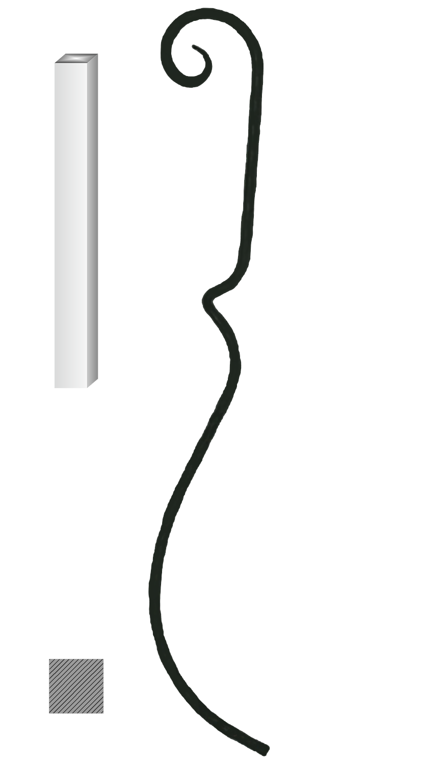 KT610HO - kovaná výplň zábradlí, tvarovaná tyč 1000 x 170 mm, 12 x 12 mm, hladký profil, hmotnost 1,...Ukaž celý popis >