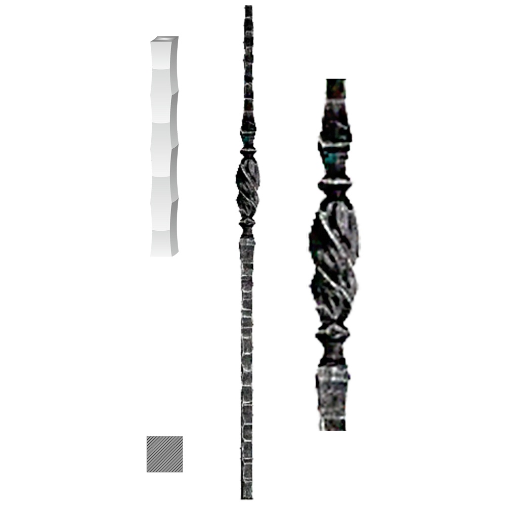 012/F - kovaný sloupek zábradlí, délka 1300 mm, materiál 25 x 25 mm, zdobený, hmotnost 7,9 kg.