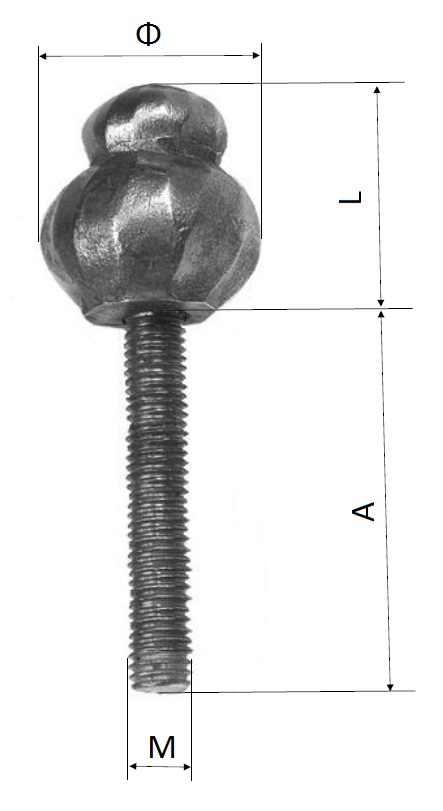 KOS25 - kovaný šroub kulatý, ø 20 mm, L = 22 mm, A = 40 mm, závit M6.