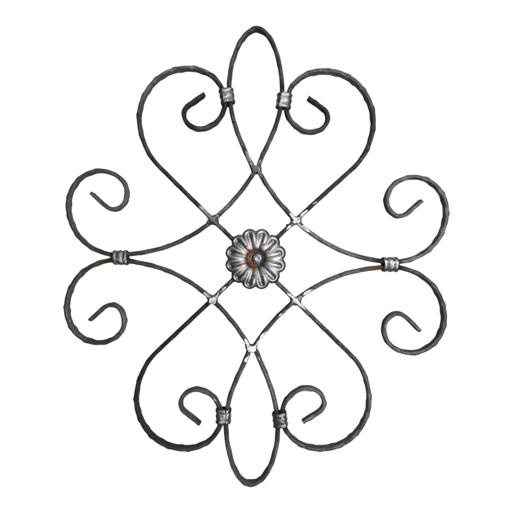 Kovářský ornament s oboustranným vzorem, rozměr 540 x 425 mm, materiál 12 x 6 mm.