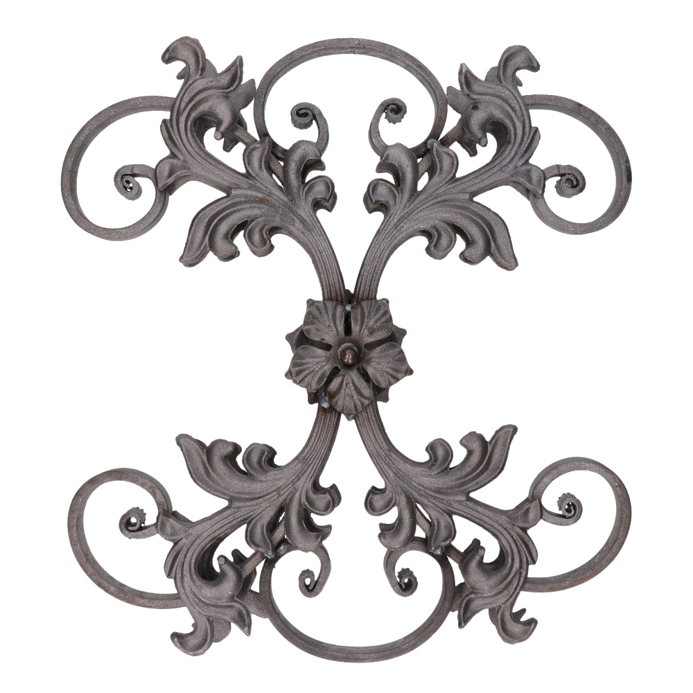 Oboustranný kovářský ornament, výška 450 mm, šířka 405 mm, materiál 16 x 8 mm, odlitek. Bez povrchové úpravy.