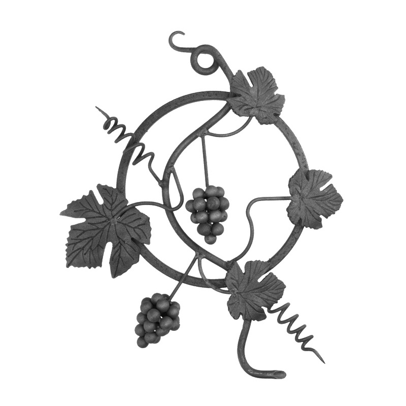 Kovářský ornament s motivem vinné révy, výška 500 mm, šířka 340 mm, kruh ø 240 mm, materiál 12 x 12 mm.