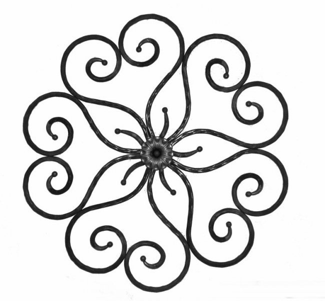 K3355V - kovářský ornament, ø 735 mm, materiál válcovaná ocel 12 x 12 mm, hmotnost 8,7 kg.